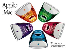 PC Apple en image pour ton arriere-plan. J'ai toujours adore, les couleurs des PC de cette marque. Pour l'epoque, il y avait une grande tendance. Surtout qu'il y avait le tout en un. Une pensee differente en anglais