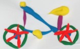 B Fabrique des petits boudins, plusieurs pour faire les rayons des roues. Ajoute maintenant les morceaux sur la boule du milieu et sur le cercle. ![]() ![]() ![]() C Il faut maintenant faire la meme chose pour la roue suivante. La roue suivante tu l'ajoutes, pas trop loin de l'autre de sorte a construire ton velo. Faire la selle